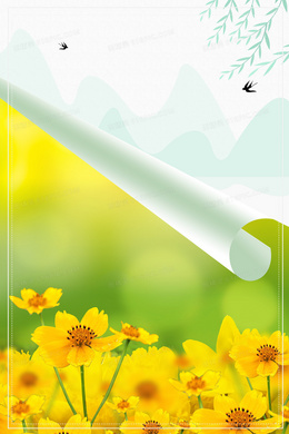 春天小清新黄色花朵摄影图合成春分背景