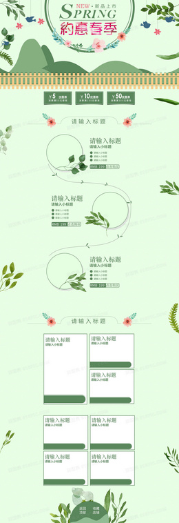 绿色彩绘植物小清新约惠春季店铺首页背景