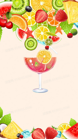 黄色小清新手绘水果PSD分层H5背景素材