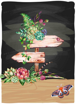 韩式小清新多肉植物路牌黑板海报背景
