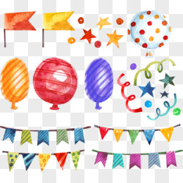 手绘派对气球彩旗元素