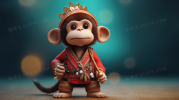 可爱卡通3D立体小猴子玩偶