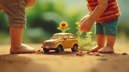 > 3D立体小男孩和小汽车模型插画
