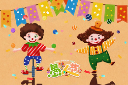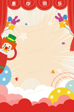 愚人节小丑魔术表演卡通促销背景