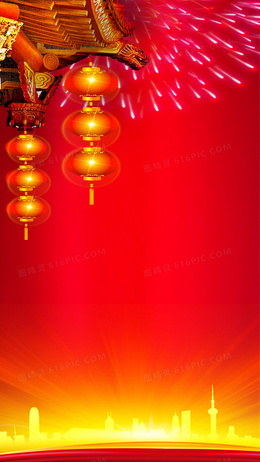 中国红喜庆灯笼H5背景素材