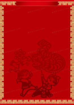 中国红喜庆新年木偶花纹边框背景