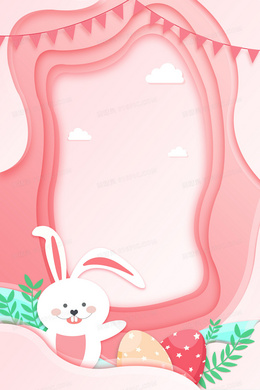 粉色剪纸风复活节小清新活动促销背景