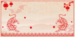 中国风虎年新年剪纸福字底纹边框背景