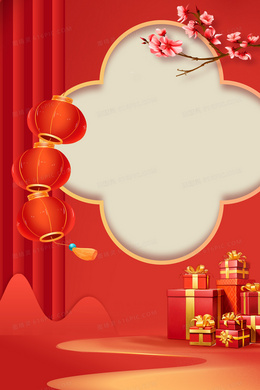 中式红色卡通新年背景素材