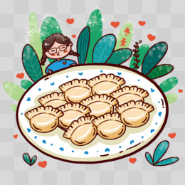 当前位置: 图精灵 > 免抠元素 > 卡通手绘 > 趴在大碗上看着饺子开心的女孩