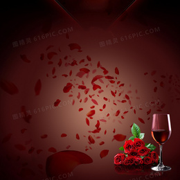 唯美浪漫红酒玫瑰背景图