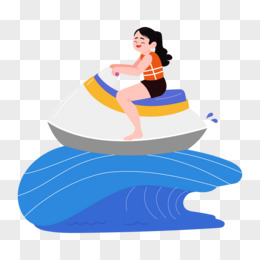 手绘女孩玩水上游艇免抠元素