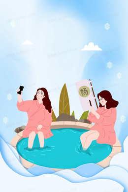 简约手绘冬天泡温泉背景