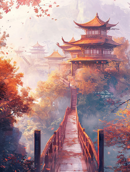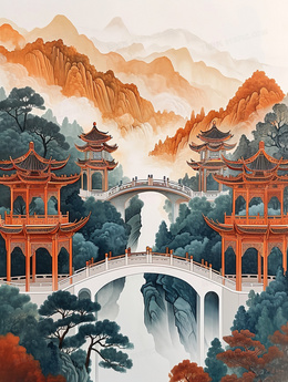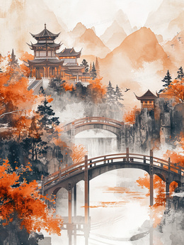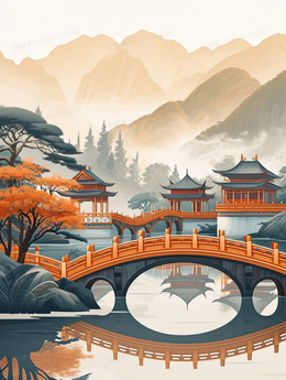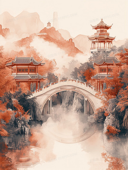 当前位置: 图精灵 > 背景图库 > 插画 > 山林里的古代寺庙与桥梁插画