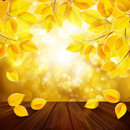 梦幻金黄秋叶木质展台背景
