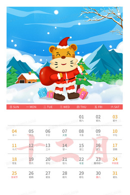 2022虎年日历二月份插画背景