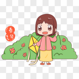 卡通手绘立春节气女孩放风筝插画场景元素