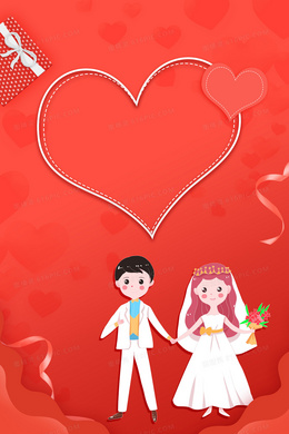 红色喜庆爱心礼物婚礼婚庆卡通背景