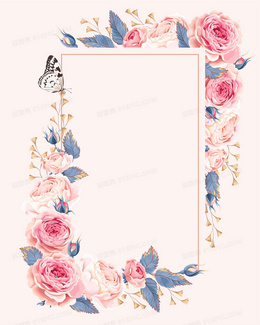 欧式婚礼庆典婚庆手绘玫瑰蝴蝶请柬海报背景