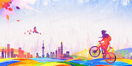 骑行户外运动炫彩水彩剪影背景