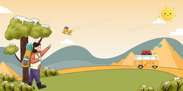 户外运动出行露营野营卡通背景