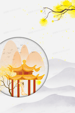古风美女亭子赏秋背景