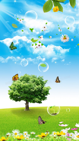 312植树节绿树蝴蝶清新自然H5背景