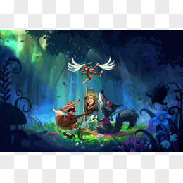 当前位置: 图精灵 > 免抠元素 > 卡通手绘 > 卡通勇者和动物海报背景