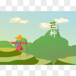 稻草人彩色芒种节气手绘风背景插画