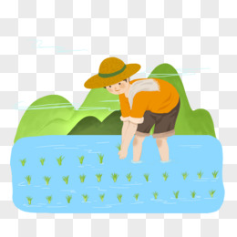 手绘卡通春耕的农夫和牛免抠元素