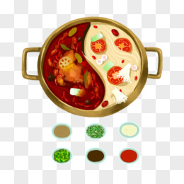 手绘鸳鸯火锅和配料免抠元素