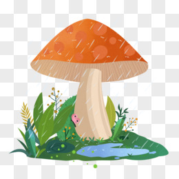 手绘插画风雨天蘑菇花草植物装饰元素