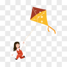 卡通手绘放风筝的小女孩素材