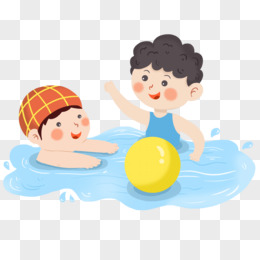 卡通手绘小男孩们夏季玩水免抠素材