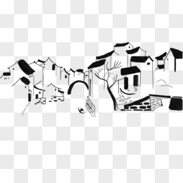 手绘简约水墨徽派建筑群元素