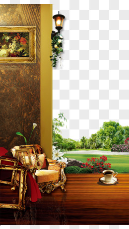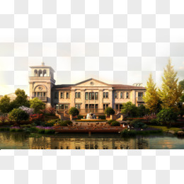 欧式别墅花园湖畔素材