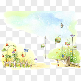 手绘水彩小清新花园背景图