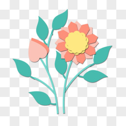 剪纸风矢量粉色花朵卡通绿色植物免抠元素
