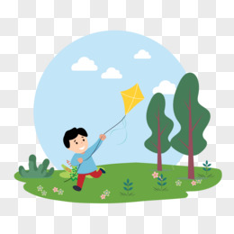 卡通手绘野外放风筝的小男孩免抠元素