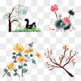 一组手绘水彩风春夏秋冬植物免抠元素