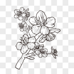 手绘黑色线稿格桑花素材