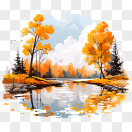 秋天风景枫叶落叶插画