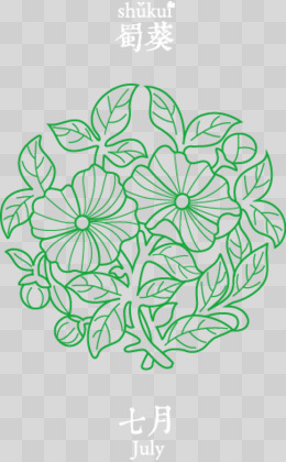 白描十二月份花卉矢量图