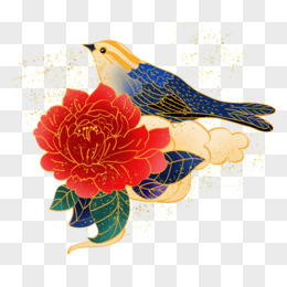 手绘国潮风花与鸟