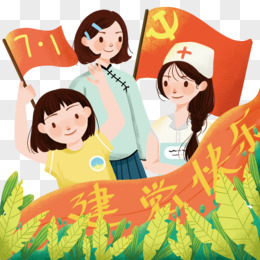 建党节群众庆祝节日插画风元素