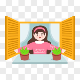 卡通矢量女孩开窗通风打开窗元素
