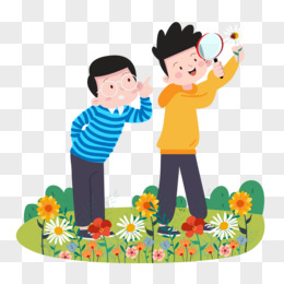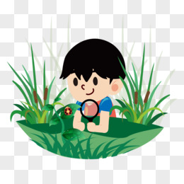 卡通手绘小男孩观察昆虫免抠元素