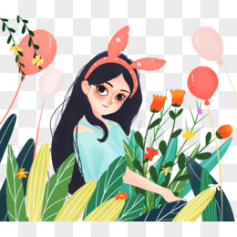 手绘卡通春天花朵赏花免抠元素