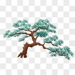 卡通手绘国潮松柏树枝免抠元素