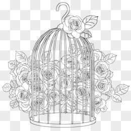 手绘玫瑰与鸟笼线稿免抠元素